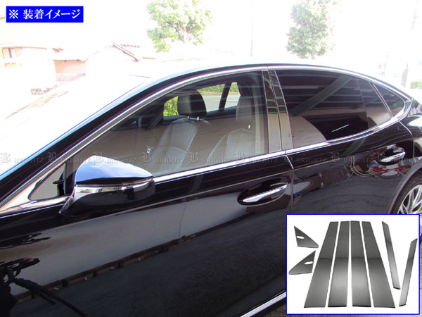 レクサス LS500 VXFA50 VXFA55 超鏡面 ステンレス ブラック メッキ ピラー プロテクター アウター バイザー無用 8PC PIL−BLA−416