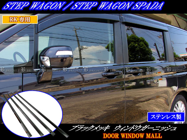 ステップワゴンスパーダ RK5 RK6 超鏡面 ステンレス ブラック メッキ ウィンドウ モール 4PC ウェザーストリップ カバー WIN−BLA−053