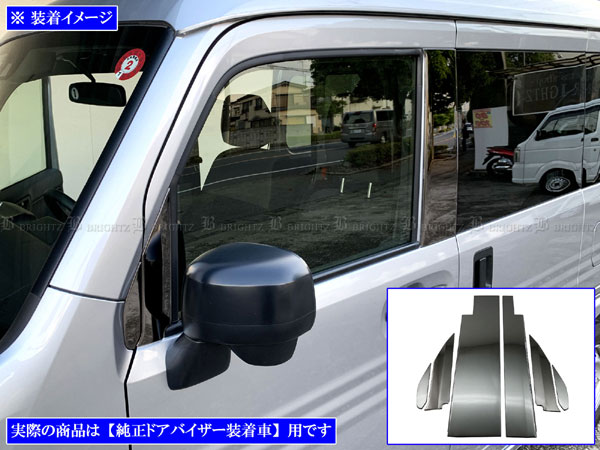 N-VAN JJ1 JJ2 超鏡面 ステンレス ブラック メッキ ピラー パネル ガーニッシュ カバー ベゼル プレート バイザー有用 6PC PIL−BLA−419