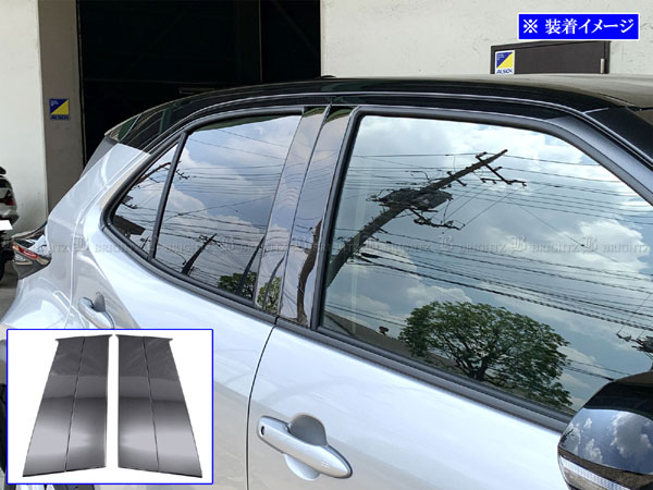 ヤリスクロス MXPB15 MXPJ15 超鏡面 ステンレス ブラック メッキ リア ピラー パネル ガーニッシュ カバー バイザー無用 4PC PIL−BLA−435