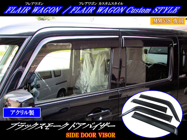 MM53 MM M53 53 フレアワゴン カスタムスタイル フレア ワゴン カスタム スタイル バイザー ドア サイド ブラックスモーク フロント リア リヤ ドア サイド ブラックスモーク 日除け 雨除け サンバイザー 〇 FLAIR_WAGON_CUSTOM_STYEL_MM03