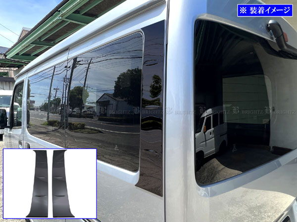 サンバーバン S700B S710B 超鏡面 ステンレス ブラック メッキ リア ピラー パネル ガーニッシュ 外装 ドア ベゼル 2PC SID−ETC−BIG−023