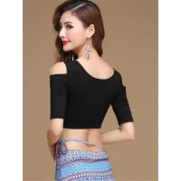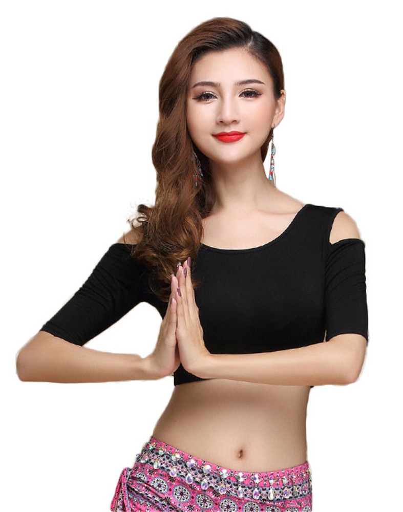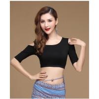 レディース ベリーダンス トップス Tシャツ ラウンドネック ランドネック 半袖 無地 ショート丈 ストレッチ セクシー シンプル レッスン