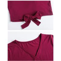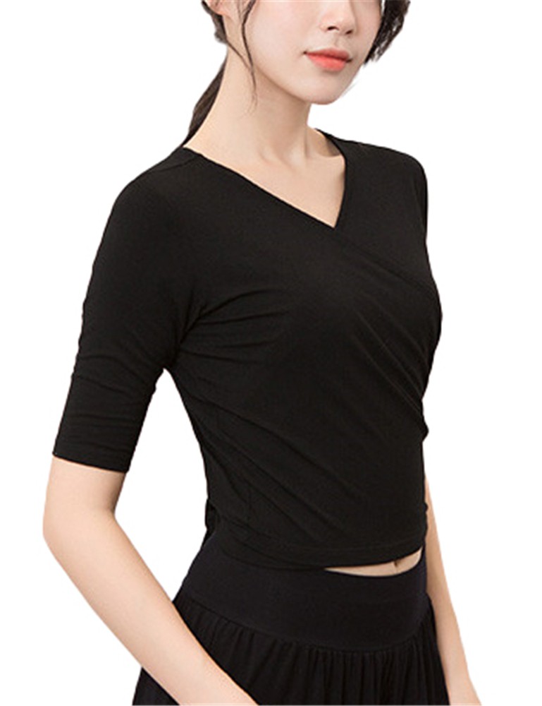 レディース ダンス ラテン バレエ ヨガ トップス Tシャツ 五分袖 Vネック フリル 2色 ストレッチ 社交ダンス レッスン モダン 練習着