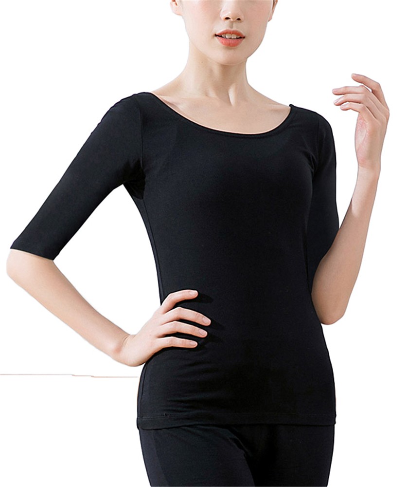 レディース ダンス ジャズ バレエ ヨガ シンプルTシャツ トップス 着?せ 五分袖 ブラック ロング ストレッチ 練習 社交ダンス レッスン