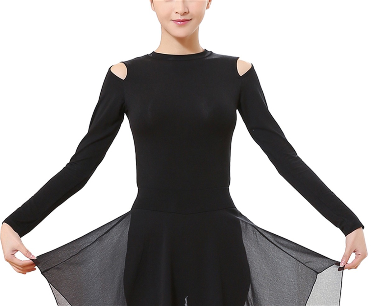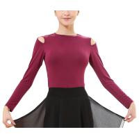 レディース ダンス ジャズ バレエ ヨガ デコルテ シンプルTシャツ トップス 着?せ 長袖 2色 ロング ストレッチ 練習 社交ダンス レッスン