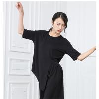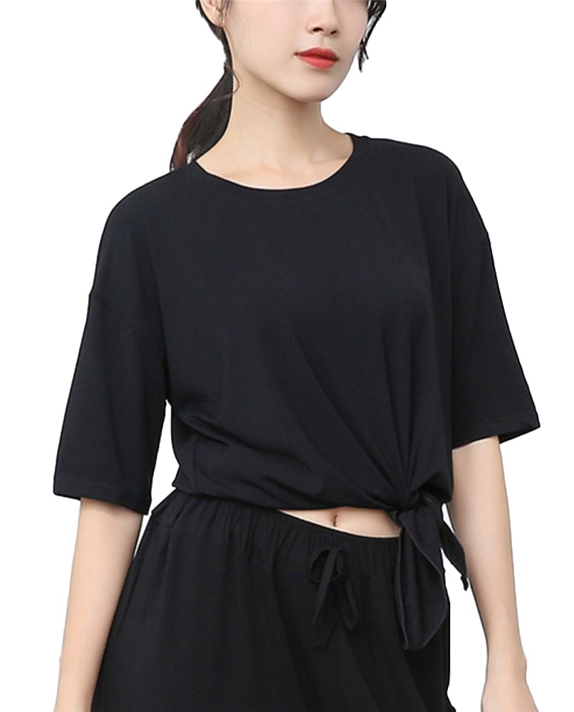 レディース ダンス ジャズ バレエ ヨガ シンプルTシャツ トップス 着?せ 五分袖 ゆったり ブラック ロング ストレッチ 練習 社交ダンス