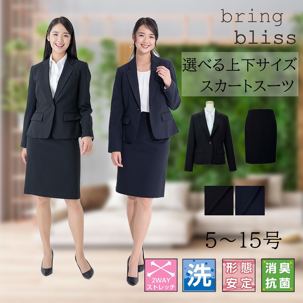 スカートスーツ レディース リクルート セットアップ ビジネス 上下選べるサイズ 洗える 就活 入 面接 通勤 母の日ご家庭でお洗濯できるお得なテーラージャケット、タイトスカートスーツです。スタイリッシュな1ボタンテーラージャケットで しわになりにくい形態安定加工・着心地の良いストレッチ素材・脇部分にはデオドラントテープ付きです。定番のタイトスカートで しわになりにくい形態安定加工・着心地の良いストレッチ素材・ウエスト部分にはデオドラントテープ付きです。ポリウレタン無しの2WAYストレッチで軽く着心地の良い仕上がりです。サイズ5号・7号・9号・11号・13号・15号カラー無地黒 ネイビー素材(表地) 無地黒、ネイビー ポリエステル100% 原産国 中国ブランド bring bliss