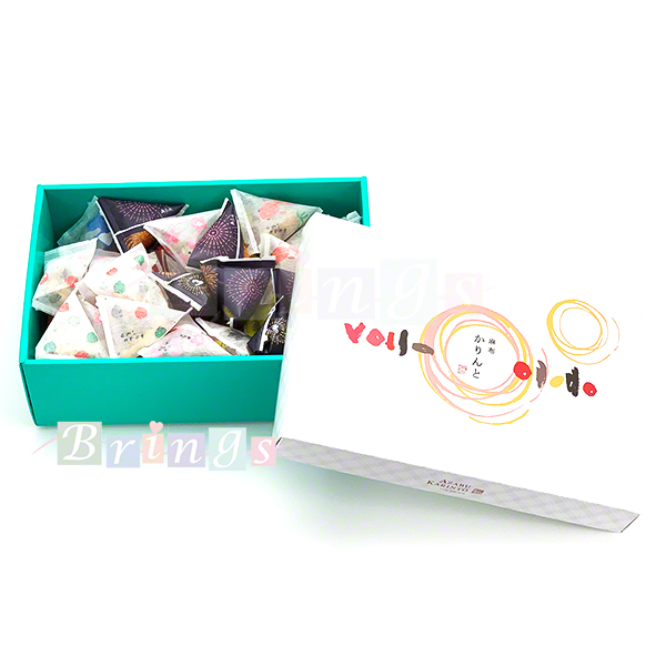 たくさんのお味のあるかりんとの詰合せ、小分けされておりお茶菓子にオススメです。おみやげ袋もお付けしておりますのでおもたせにもお使いいただけます。ポイント利用にもお使いください。