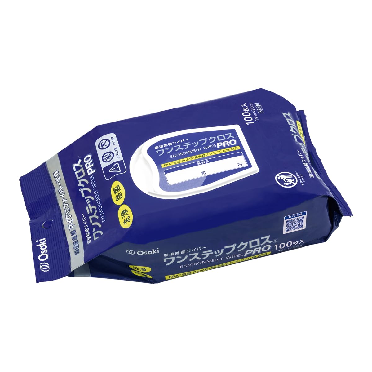 OO Osaki(オオサキ) 環境除菌ワイパー ワンステップクロス PRO ピロータイプ 100枚入 除菌洗浄 ノンアルコール 日本製 72179