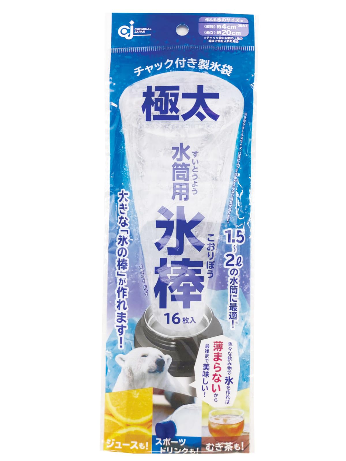ケミカルジャパン 製氷 製氷袋 チャック付き 透明 6.5×縦22.5cm マチ1.5cm 水筒用 氷棒 アイス棒 16枚入
