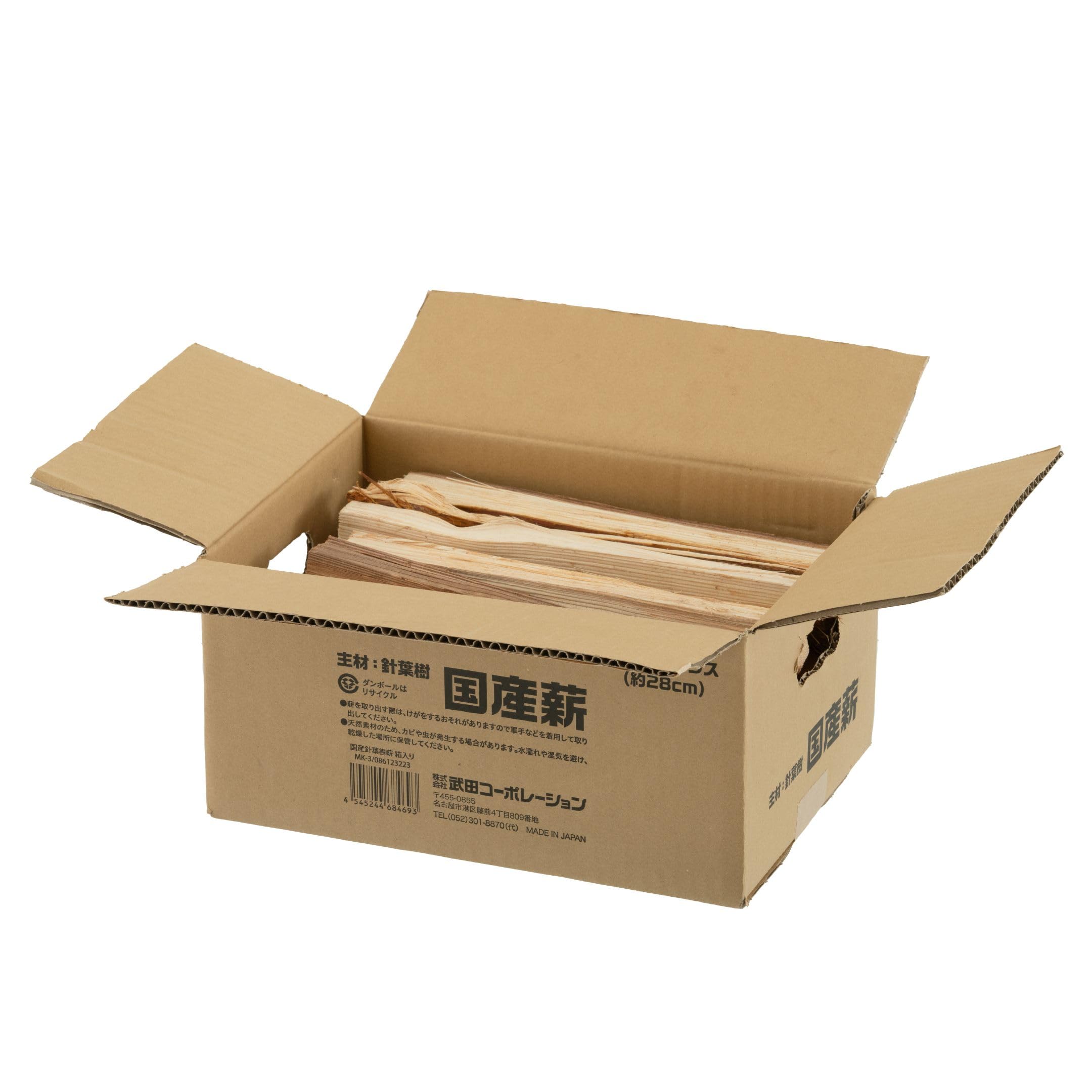 武田コーポレーション 28cm 国産・キャンプ・アウトドア ナチュラル 国産針葉樹薪 箱入り MK-3