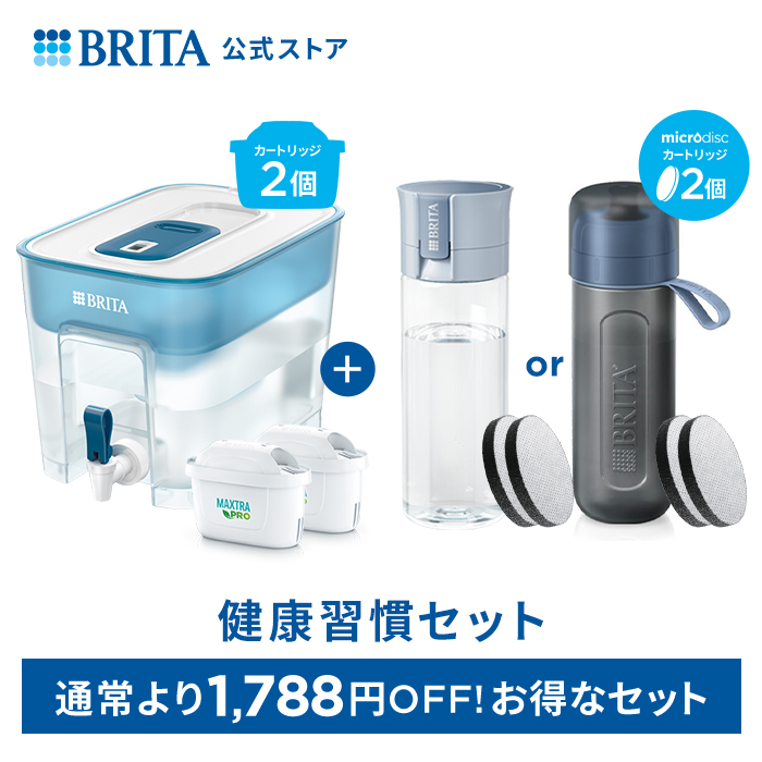 【健康習慣セット】 フロー カートリッジ2個入り ろ過水容量4.85L (全容量8.2L) 選べるボトル型浄水器