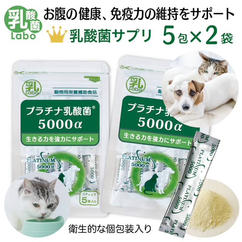 犬 猫 乳酸菌 ペットサプリ 動物用サプリメント 免疫力 国産 便秘 整腸 健康食品 無添加 アレルギーフリー プラチナ乳酸菌5000α 5包入×2