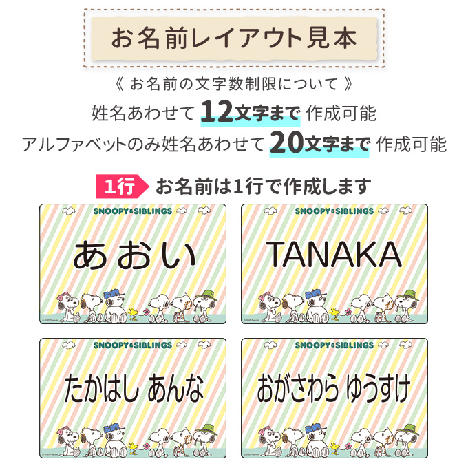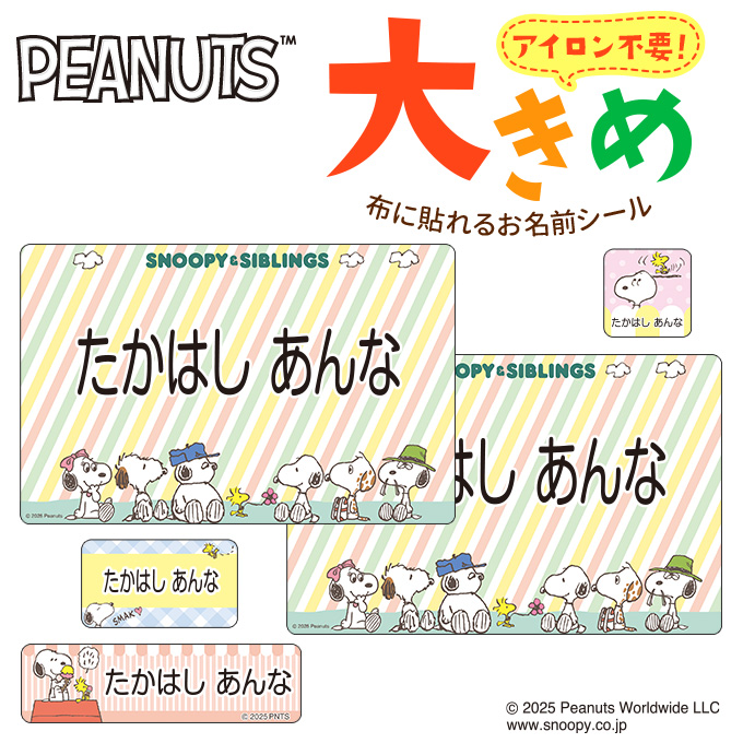 お名前シール 大きい スヌーピー SNOOPY パステル ノンアイロン お昼寝布団 体操服 ゼッケン 布用 洗濯OK アイロン不要 洋服 衣類 送料無料 PR