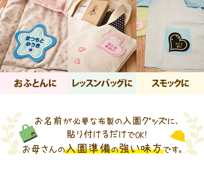 お名前ワッペン フェルト ハート型 3枚組 ネームワッペン アイロン 入園 刺繍 プレゼント OR