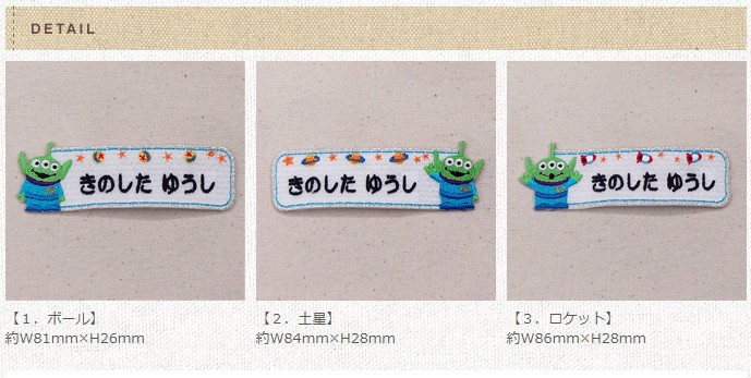 お名前ワッペン エイリアン ディズニー キャラ 1行 3枚セット ネームワッペン アイロン 入園 刺繍 プレゼント OR
