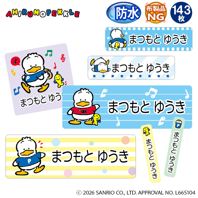 お名前シール あひるのペックル サンリオ 防水 耐水 名前入り ネームシール おなまえシール レンジ 食洗機 プレゼント 送料無料 PR