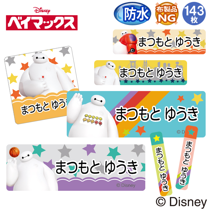 入園 入学 キャラクター お祝い 名入れ ローマ字 ひらがな 漢字 小学校 幼稚園 保育園 子供 キッズ 撥水 はっ水 おなまえシール Disney ベイマックス Baymax ヒロ