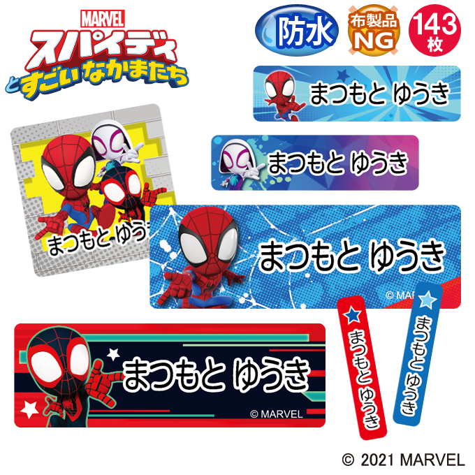 お名前シール スパイディとすごいなかまたち 防水 耐水 名前入り ネームシール 名前しーる レンジ 食洗機 入園 入学 送料無料 PR