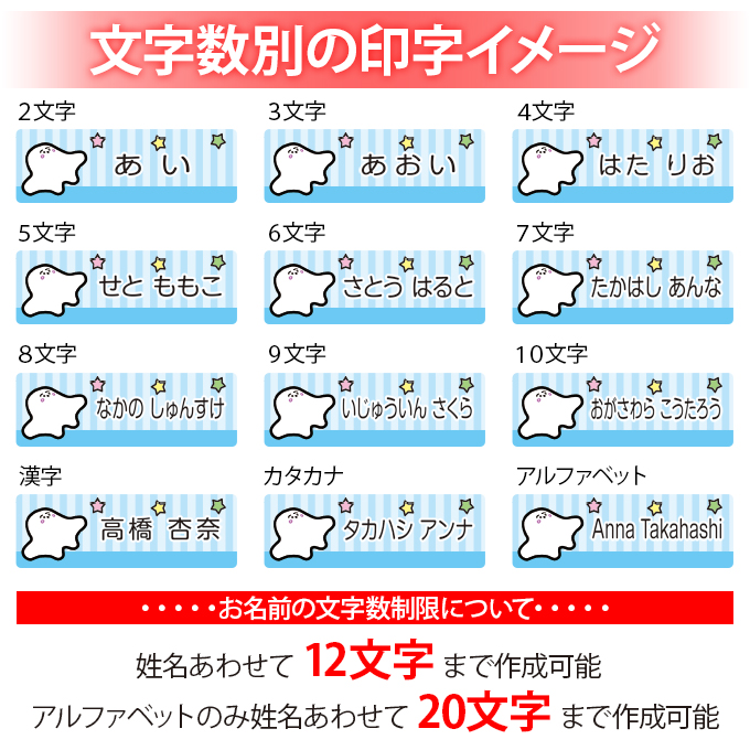 ・アルファベットは姓名あわせて、20文字まで作成可能