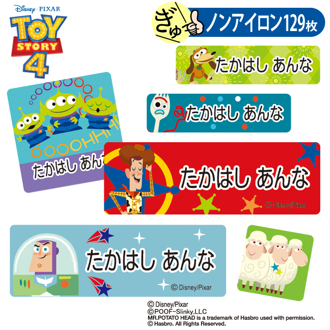 お名前シール トイストーリー4 ディズニー キャラ ノンアイロン タグ用 布用 洗濯OK アイロン不要 服 送料無料 PR