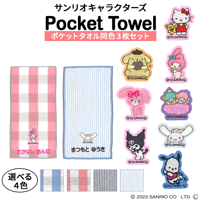名入れ 刺繍 ポケットタオル サンリオ 3枚 名前 子供 男の子 女の子 ギフト ハンドタオル キャラクター OR