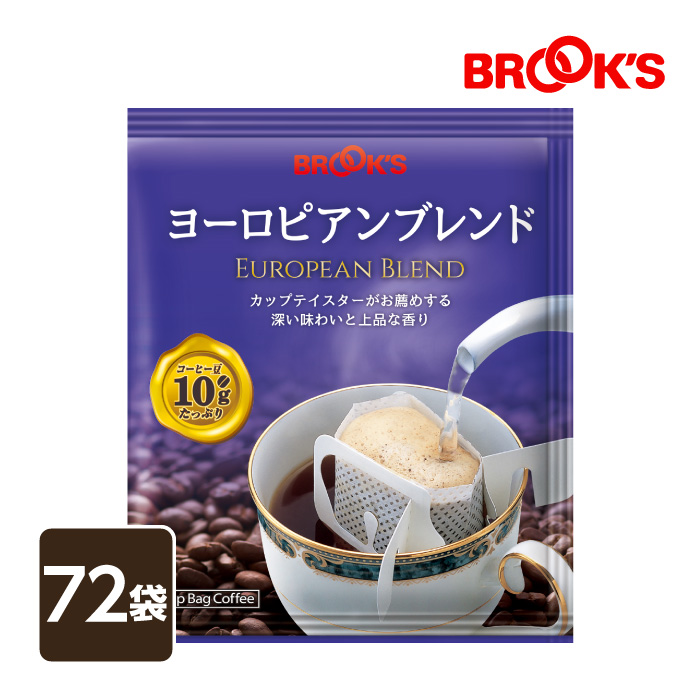 コーヒー ドリップコーヒー ヨーロピアンブレンド 72袋 ドリップ ドリップパック ドリップバッグ 珈琲 個包装 1杯10g ブレンド たっぷり ブルックス BROOK'S