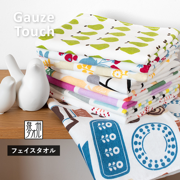 ガーゼタオル フェイスタオル 1枚 ガーゼタッチ 日本製 泉州タオル タオル 送料無料 (ポスト投函) おしゃれ フルーツ 北欧 速乾