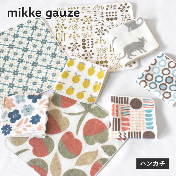 ネコに、レモン、メガネにお花。優しい北欧テイストのデザインが可愛いガーゼハンカチ。