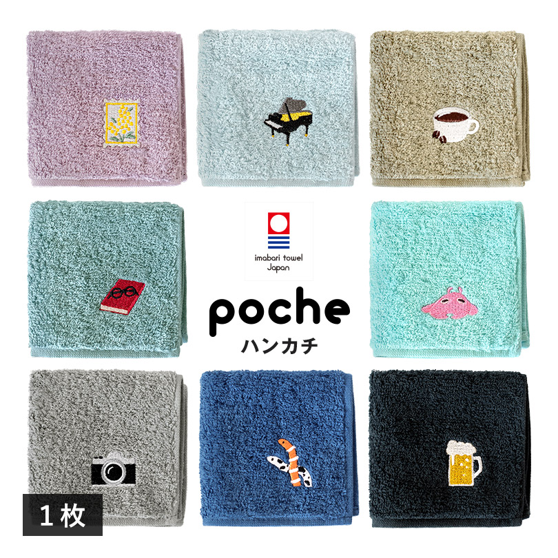 ワンポイントの刺繍がかわいい今治タオルハンカチ「ポッシュ」。