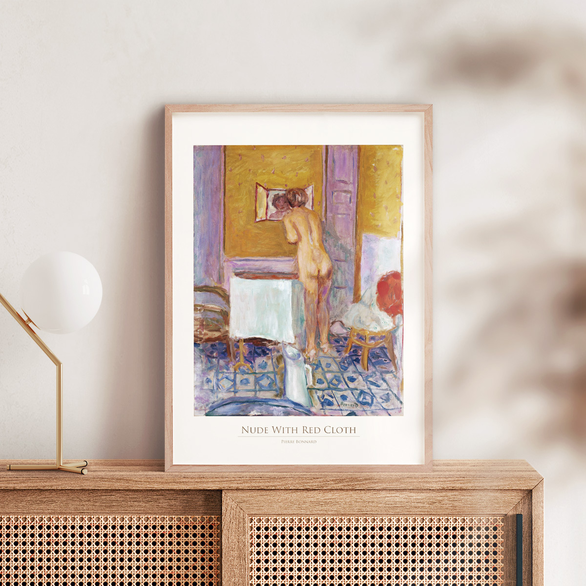 1915年頃に描かれた、ピエール・ボナールの絵画「Nude With Red Cloth」をデザインしたアートポスターです。