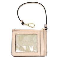 無地 レザー シボ メタルロゴ アーチロゴ スリム IDケース 定期入れ パスケース キーリング ストラップ シンプル エレガント カードケース CAMELIA カメリア ZIPPED CARD CASE WITH STRAP ライトベージュ ブランド小物 全国送料無料