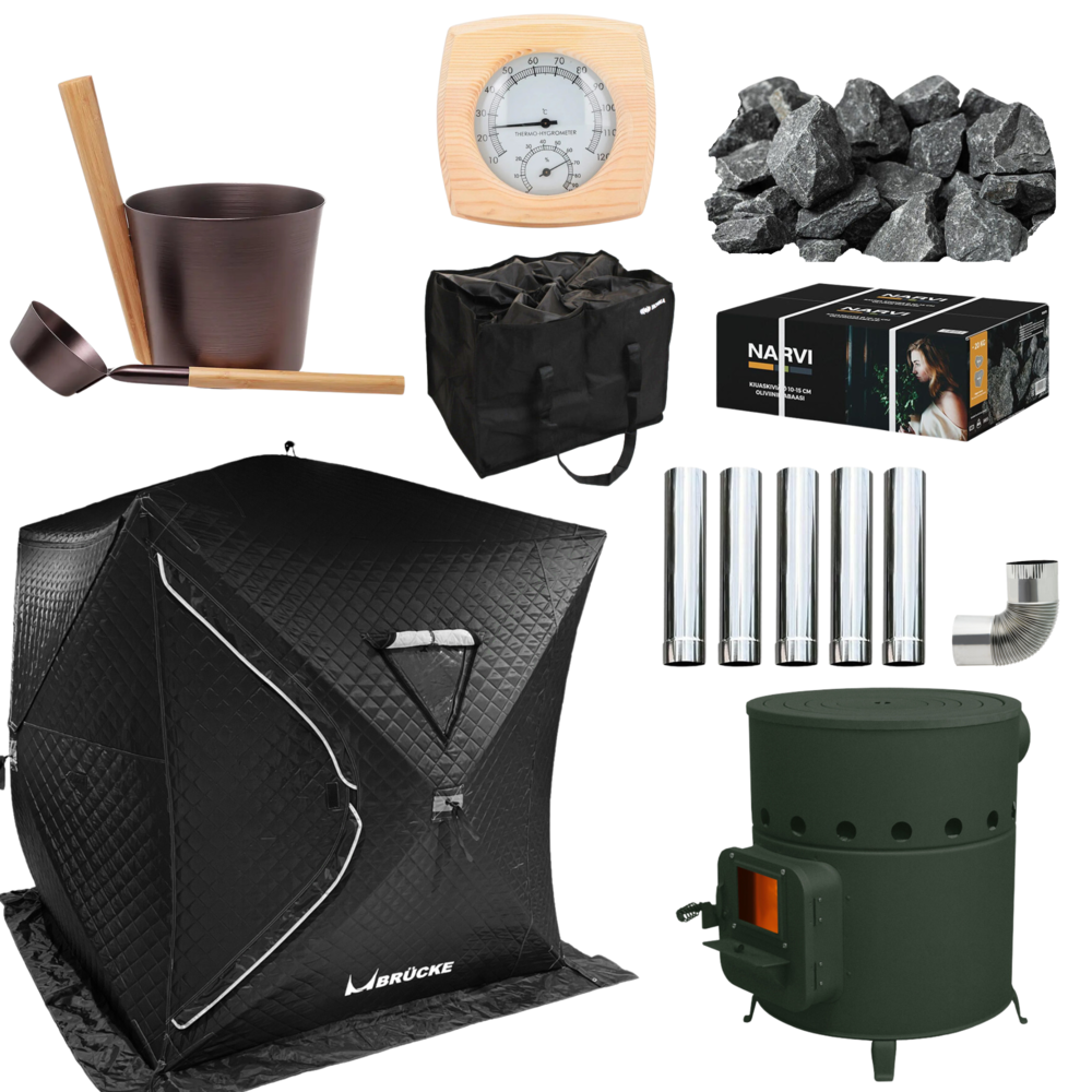 BRUCKE テントサウナ ホンマ製作所薪ストーブ オールインワン セット 簡単設営 ロウリュ Blackパノラマビュー