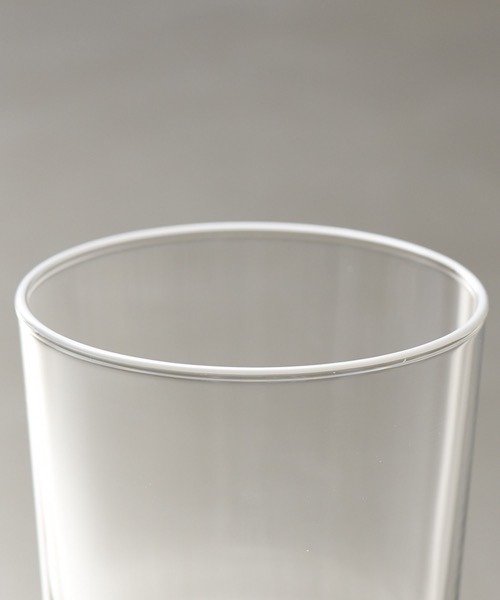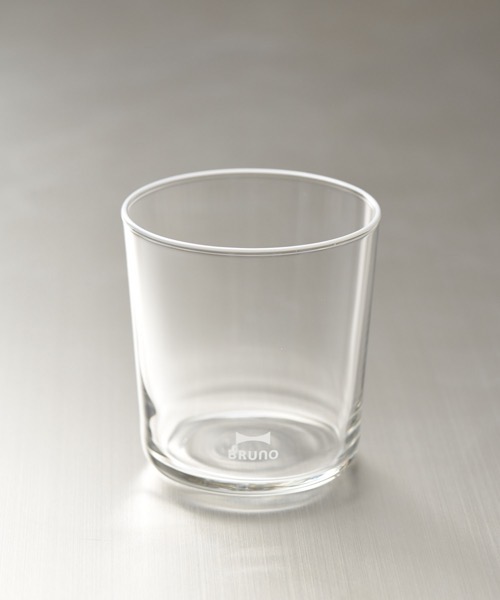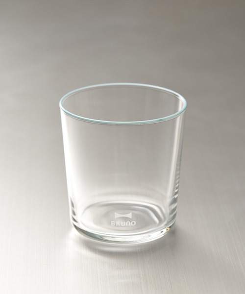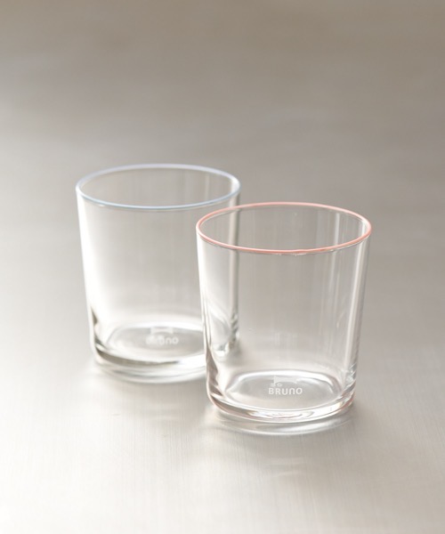 円柱形のシンプルなかたちのグラスに、BRUNOオリジナルカラーのフチまきとさりげないロゴを施しました。