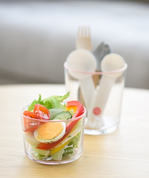 円柱形のシンプルなかたちは、ドリンクやヨーグルト、サラダ等の食品以外にも