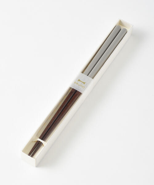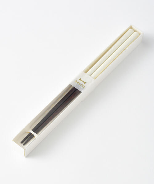 BRUNOロゴ入りのケースに入ったお箸。やさしい印象の角丸のシルエットがポイントです。