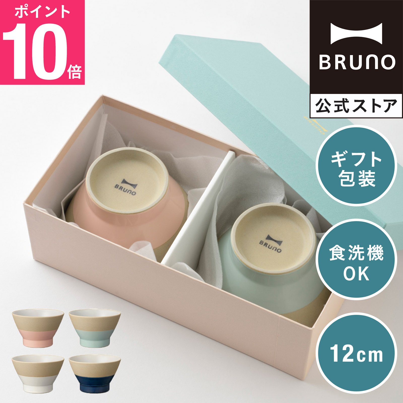 お茶碗 おしゃれ ペア お茶碗セット 結婚祝い ブルーノ ペアWAN BHK169-PKxGR 食器 ギフト ペアセット BRUNO 母の日 引っ越し祝い 入学祝い