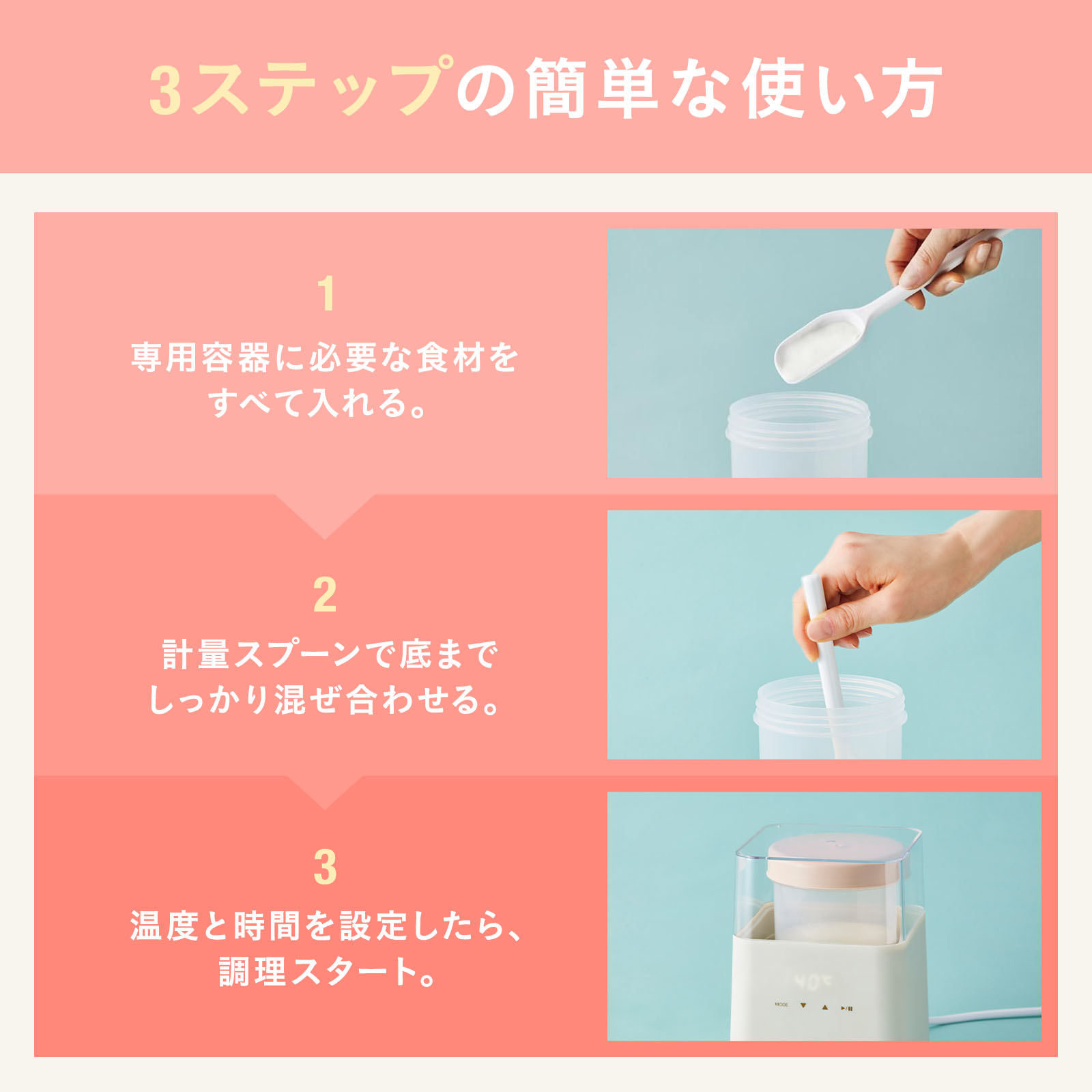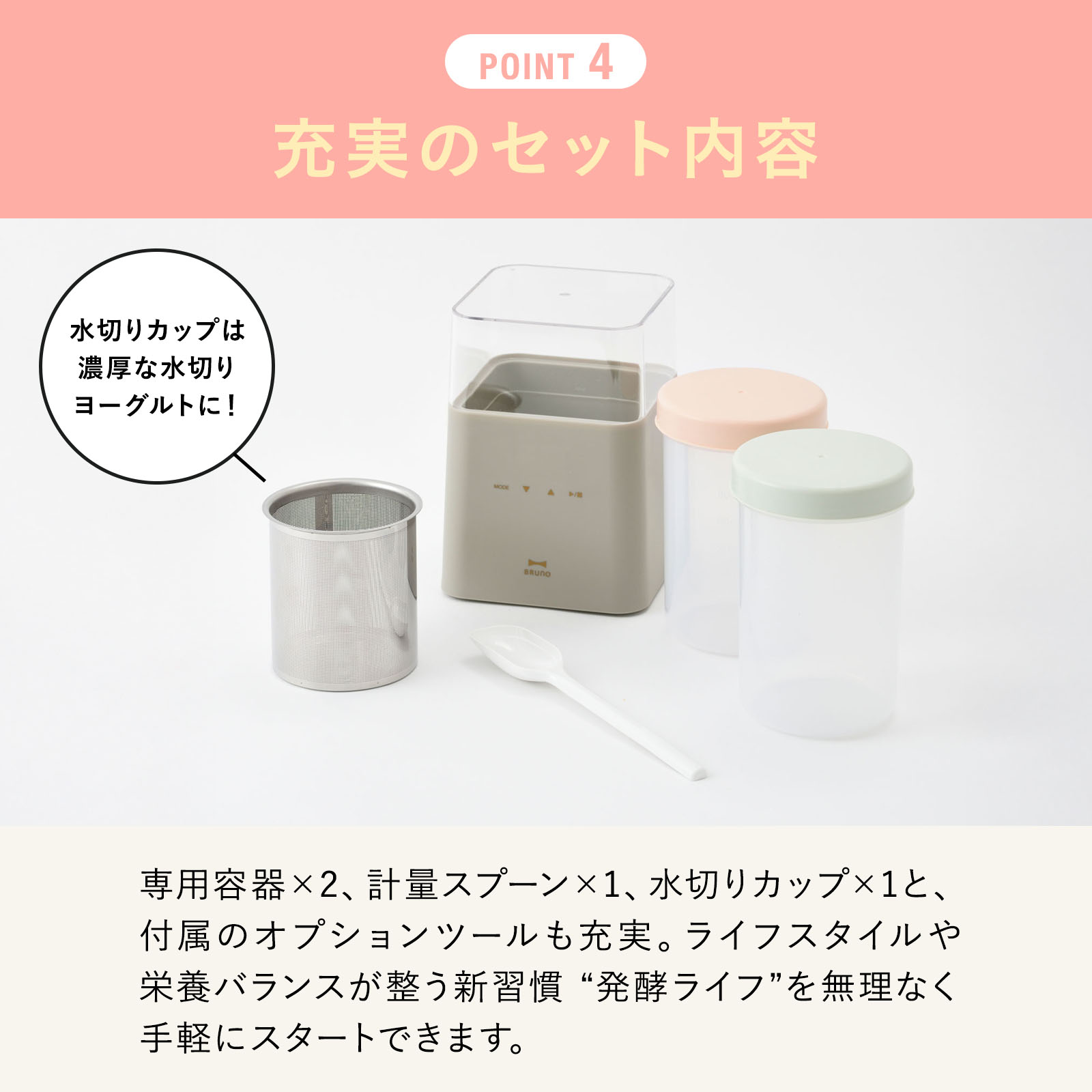 | 付属品 | 専用容器×2、水切りカップ、計量スプーン |