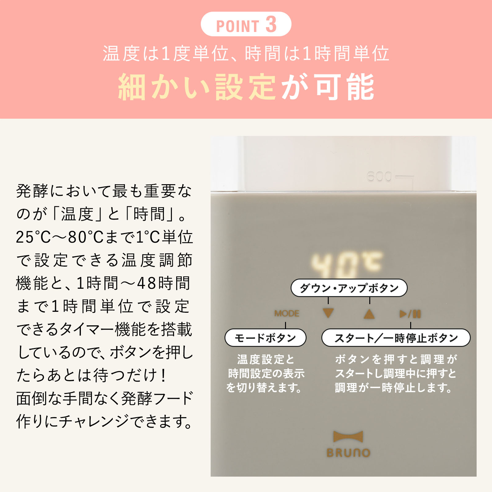 | 機能 | 消費電力:40W、温度設定(25℃〜80℃、1℃単位) 時間設定(1 〜48時間、1時間単位) |