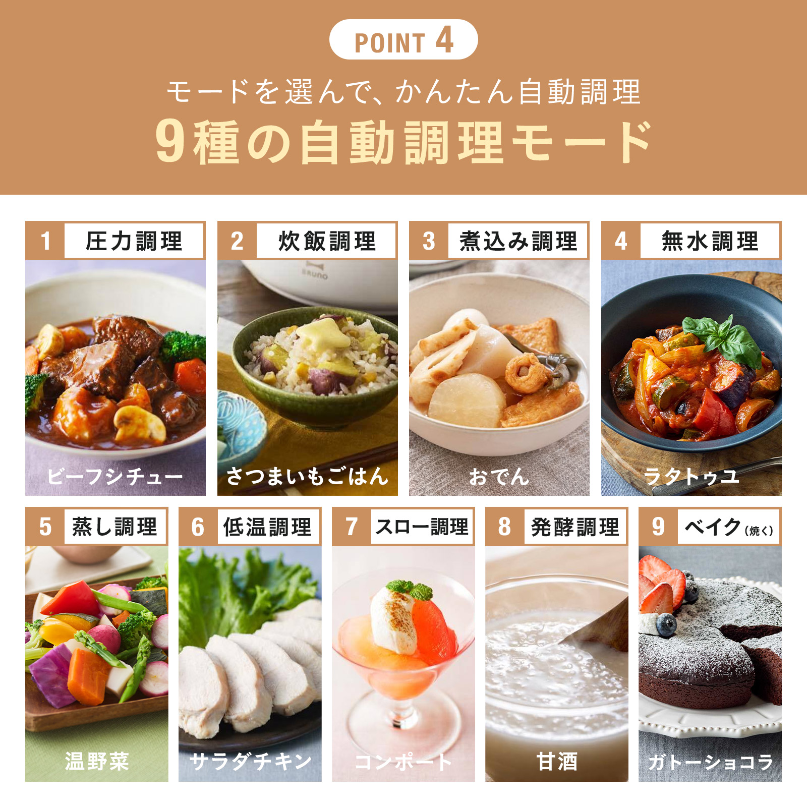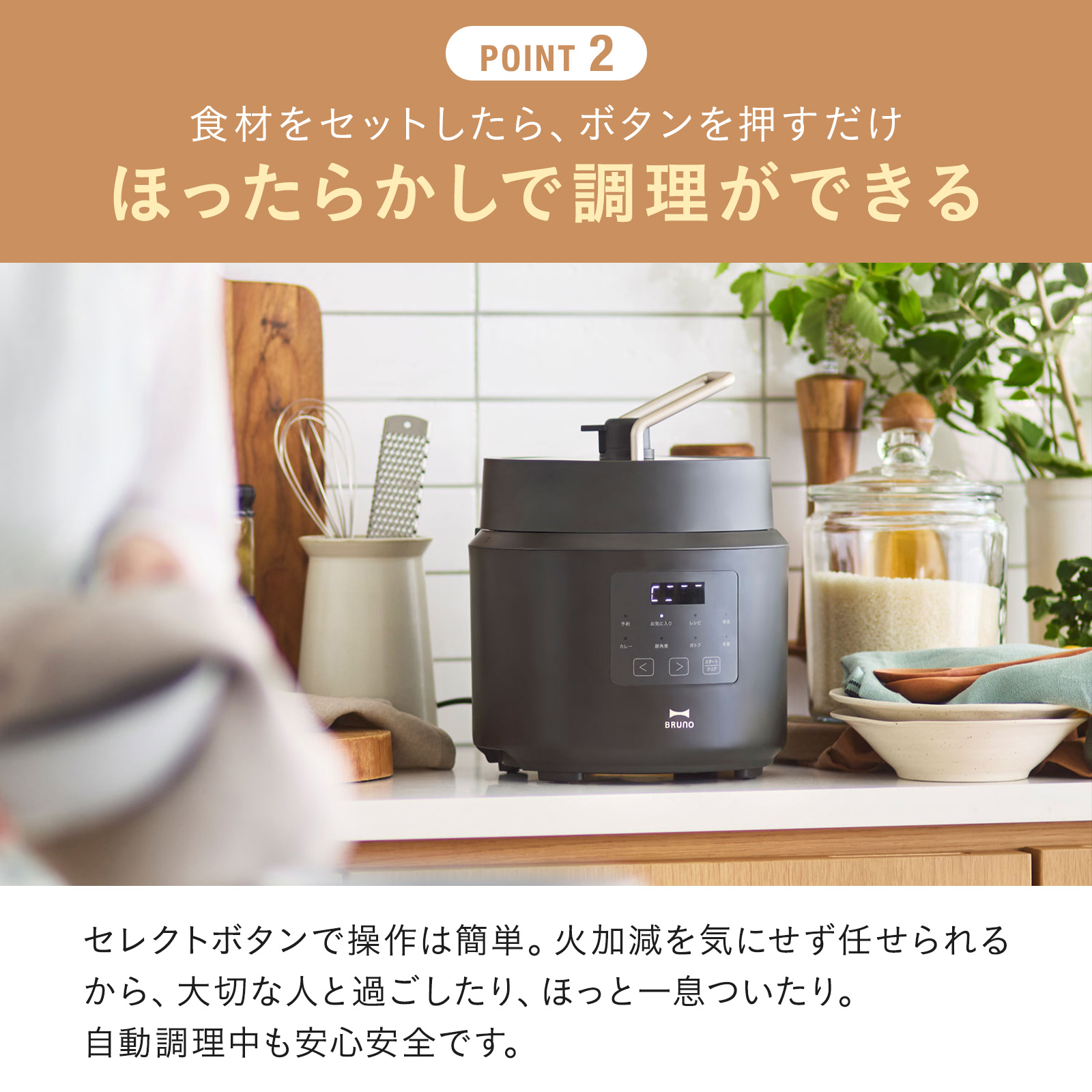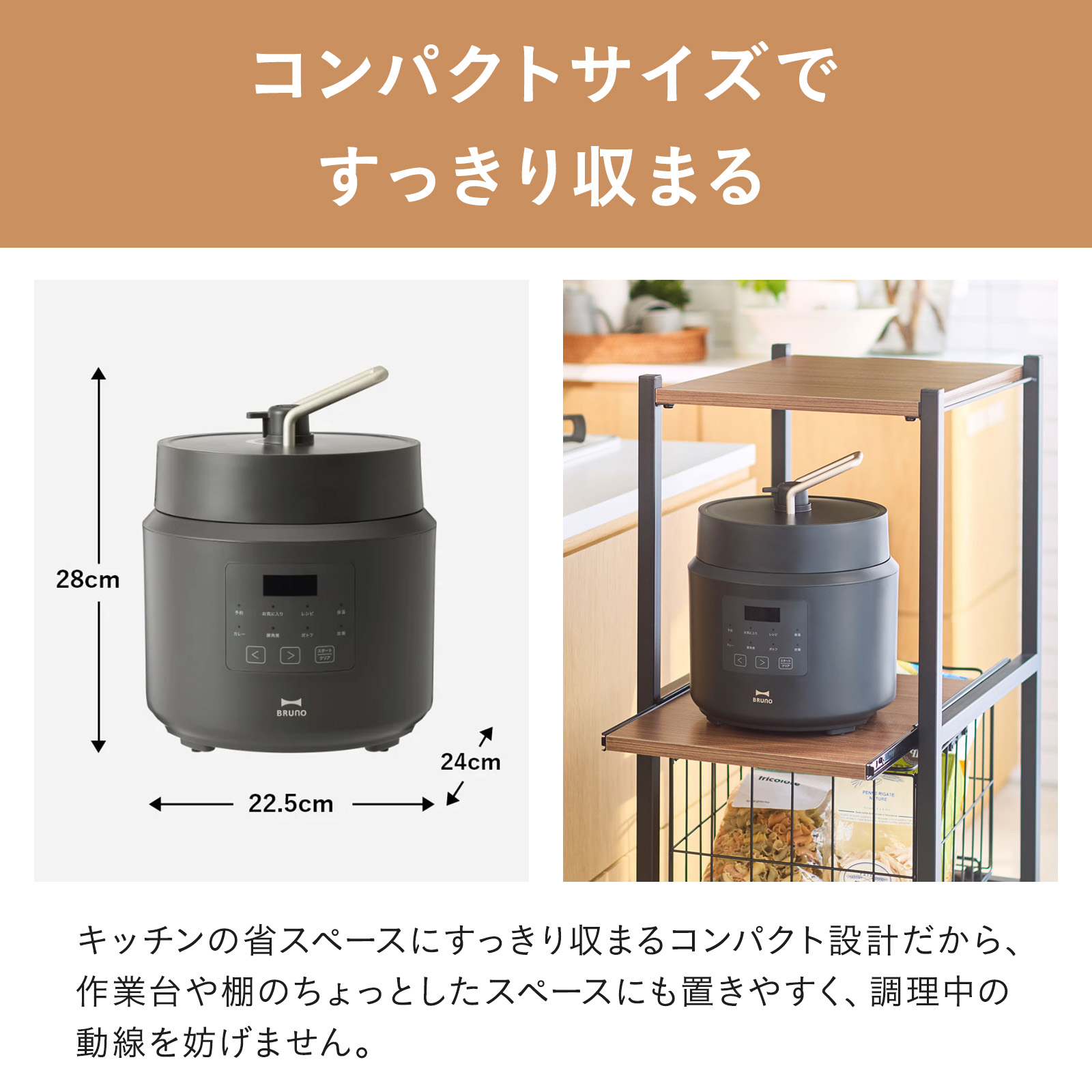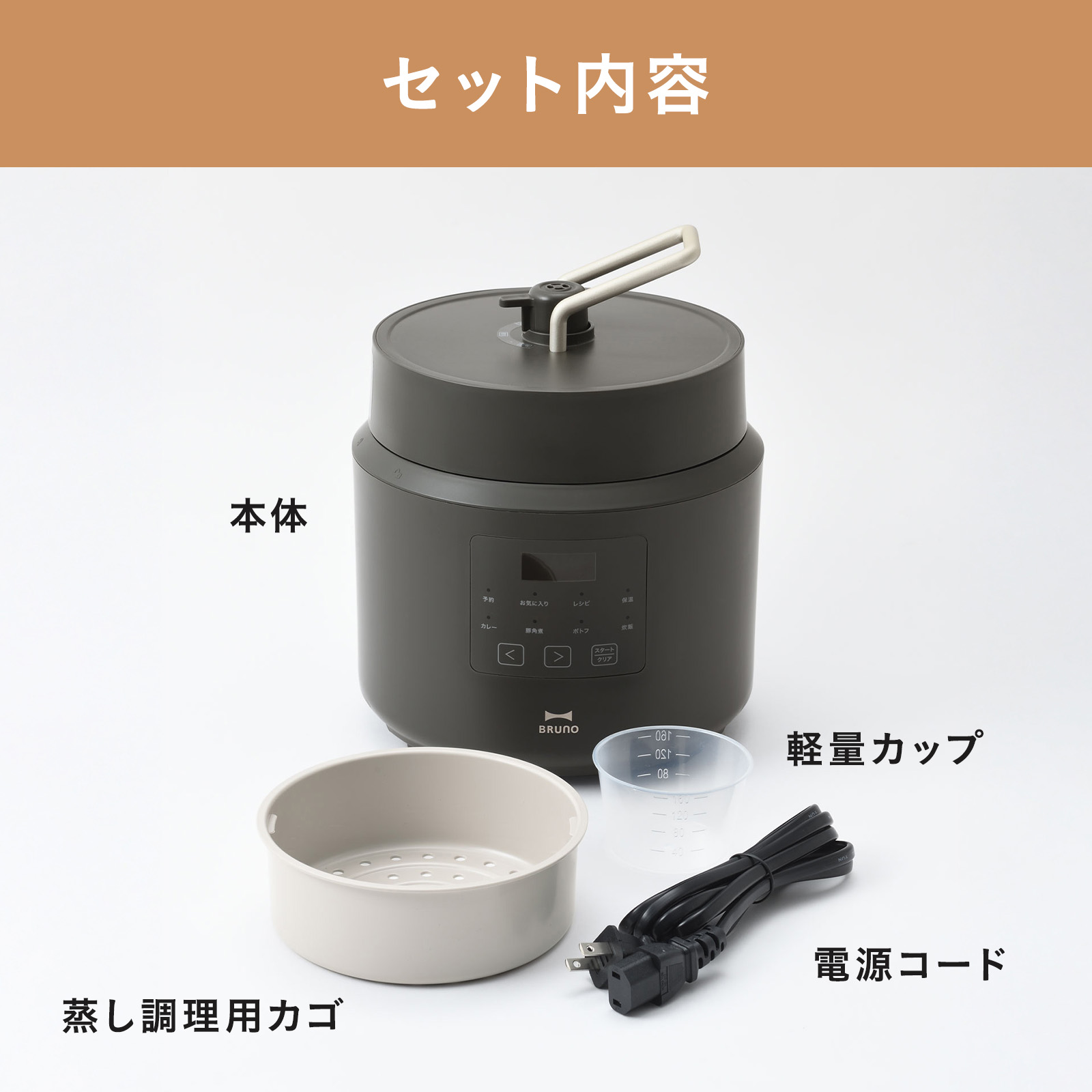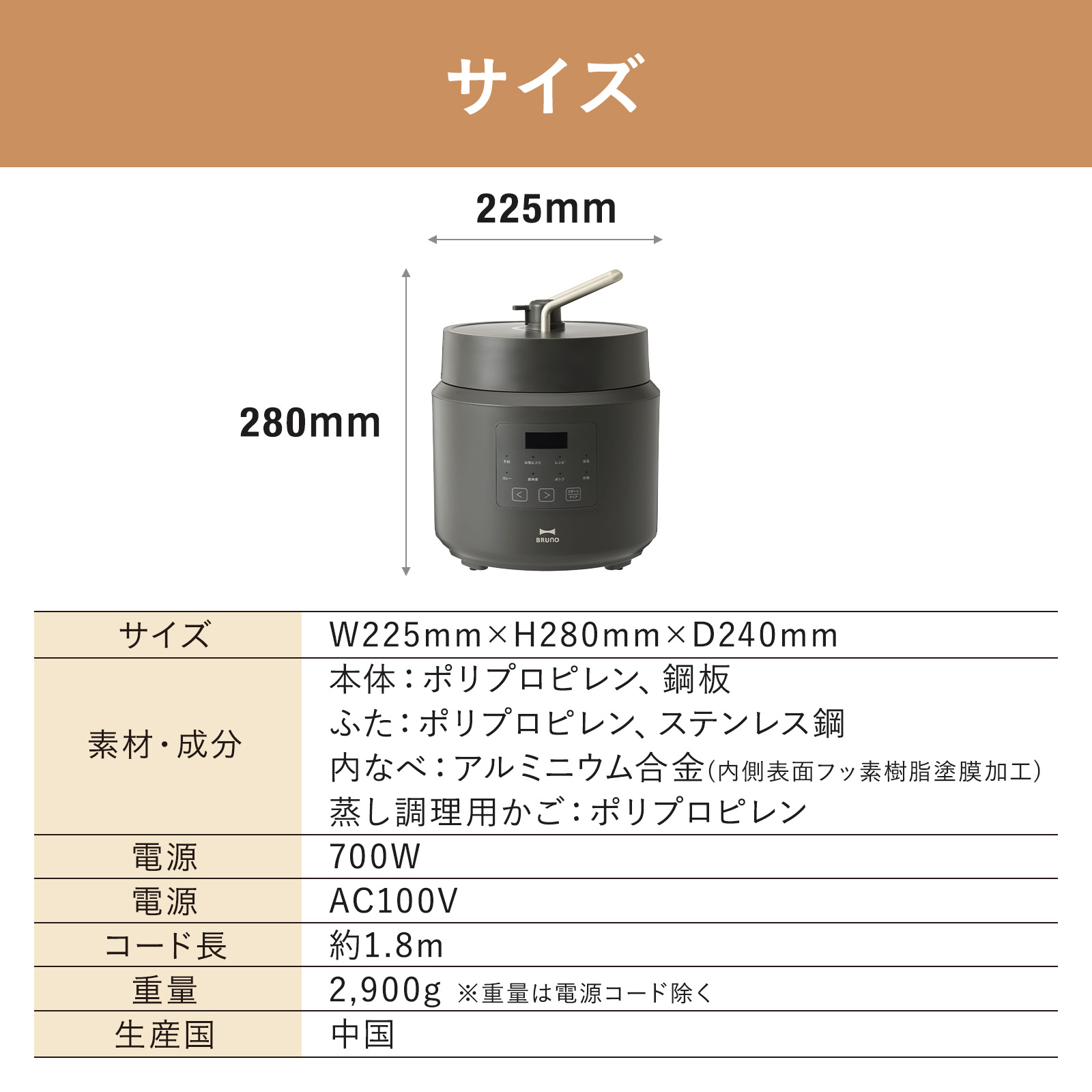 | ご注意 | ・詳しい商品に関する注意事項、使用方法については取扱説明書、並びにBRUNO株式会社コーポレートサイトのよくある質問をご確認ください。 |