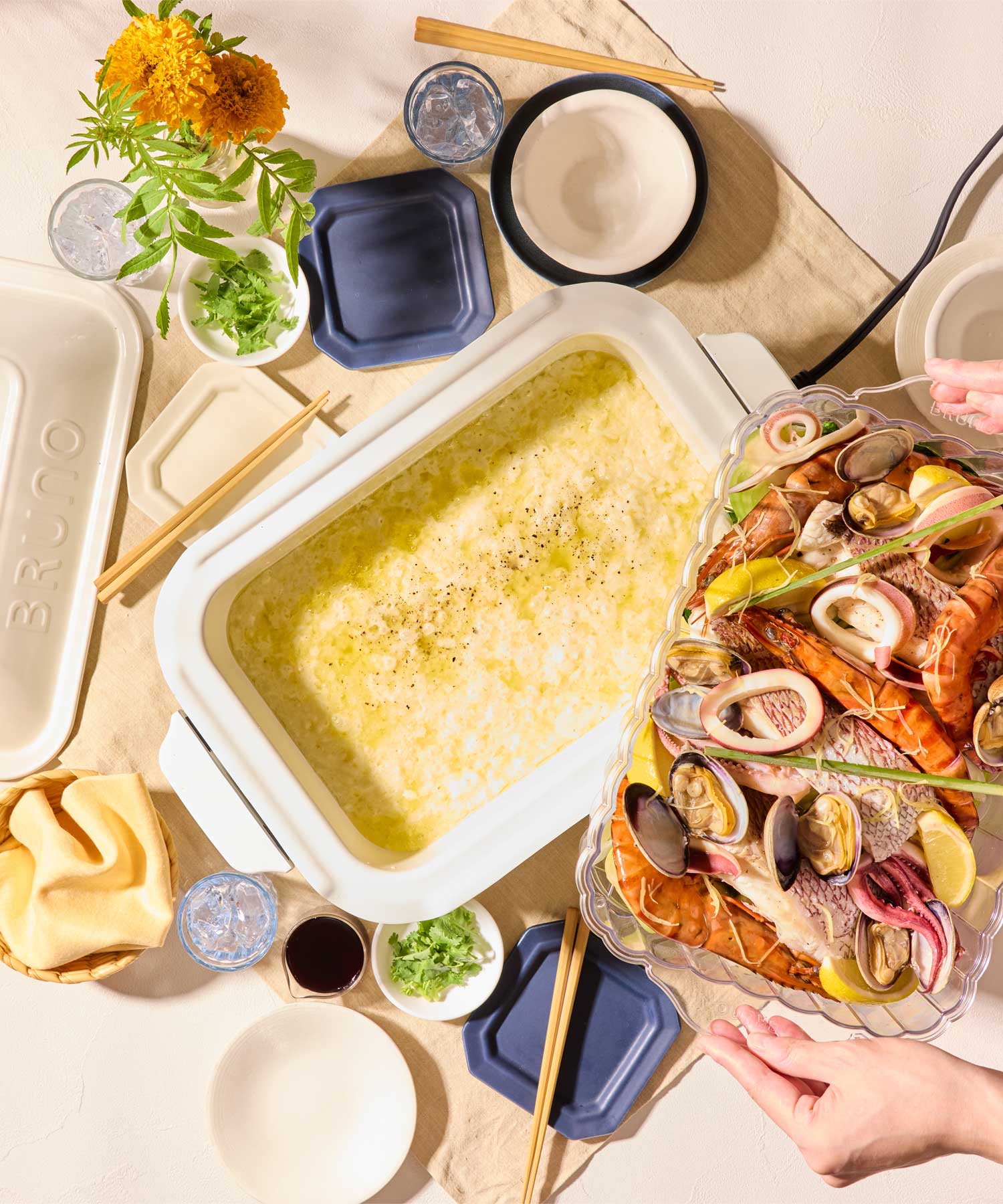 ■ POINT 商品特徴セラミックコート鍋(※別売り)と組み合わせてレシピが広がる、オプションスチーマー※「コンパクトホットプレート用スチーマー」は、必ず「コンパクトホットプレート用セラミックコート鍋」(別売り)とセットでご使用ください。