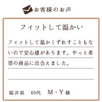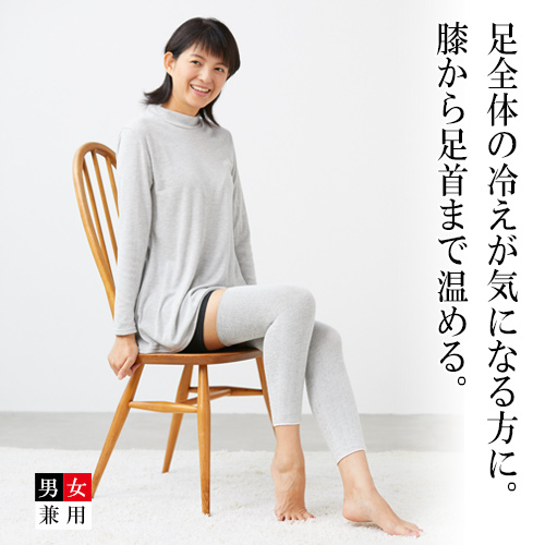 ソフト膝サポーターより丈が長いため、冷えるとつらい膝だけでなく足元まで優しいぬくもりで包み込み、蒸れずにじんわりと温めます。だから膝だけでなく足元まで冷える方に特に喜ばれています。 |