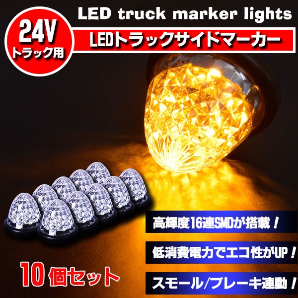 サイドマーカー 10個セット 16LED24V対応 スモール/ブレーキ 切替式 トラックマーカー ダイヤモンドカットレンズ 車幅灯 ランプ マーカー トラック