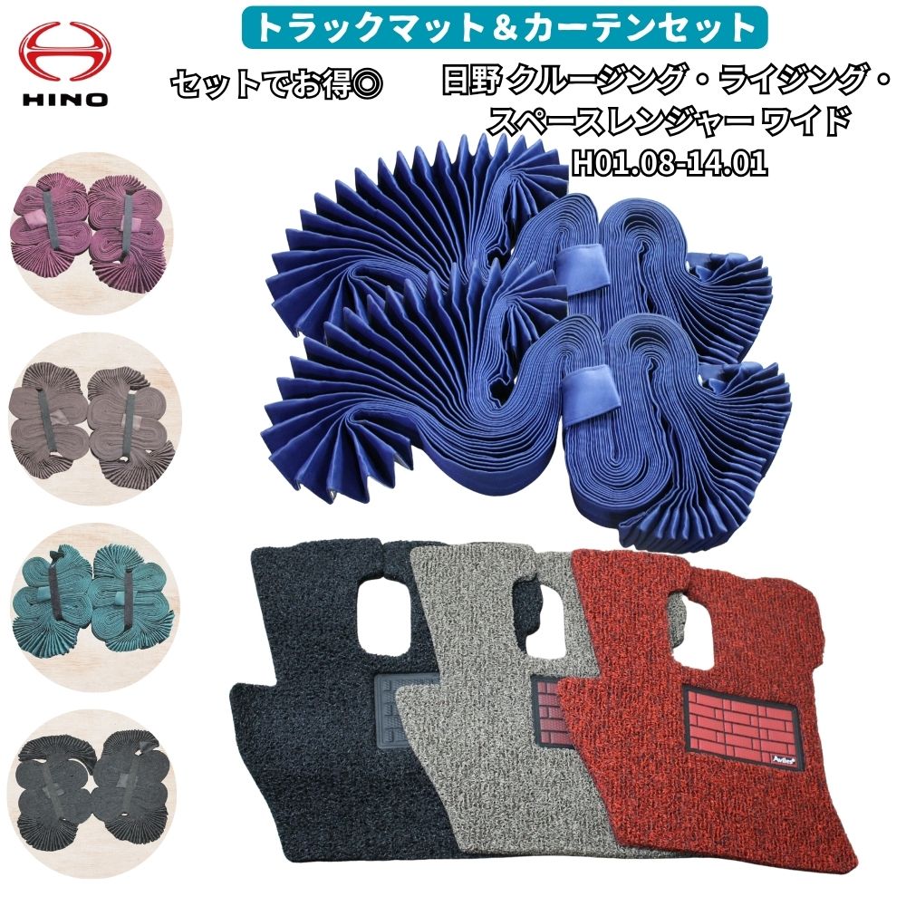 日野 クルージング ライジング スペースレンジャー ワイド トラックマット カーテン セット H1.8-14.1 遮光99.9% 仮眠 ラウンド クリーンマット 5色×3色