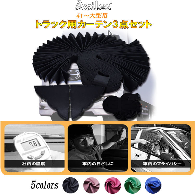 トラック カーテン 3点セット ラウンド センター 三角 遮光99.9% 汎用 中型 大型 4t 10t アイマスク付 5色 オリジナル 仮眠 車中泊 安眠