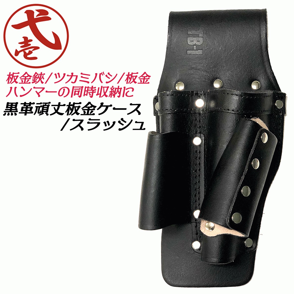 鳶壱 頑丈黒革板金ケース/スラッシュ 国産牛革仕様 板金バサミ 金切バサミ 鋏 板金ハンマー つかみばし ツカミ レザー 工具差し 本皮 日本製 LX-23 TOBIICHI