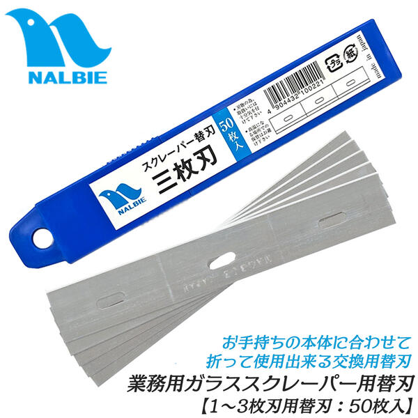 ナルビー 三枚刃 替刃 50枚入 カーボン鋼 極薄 業務用 清掃業 ハウスクリーニング IHクッキングヒーター 油汚れ 水垢 塗料 接着剤 シール AGH003 nalbie