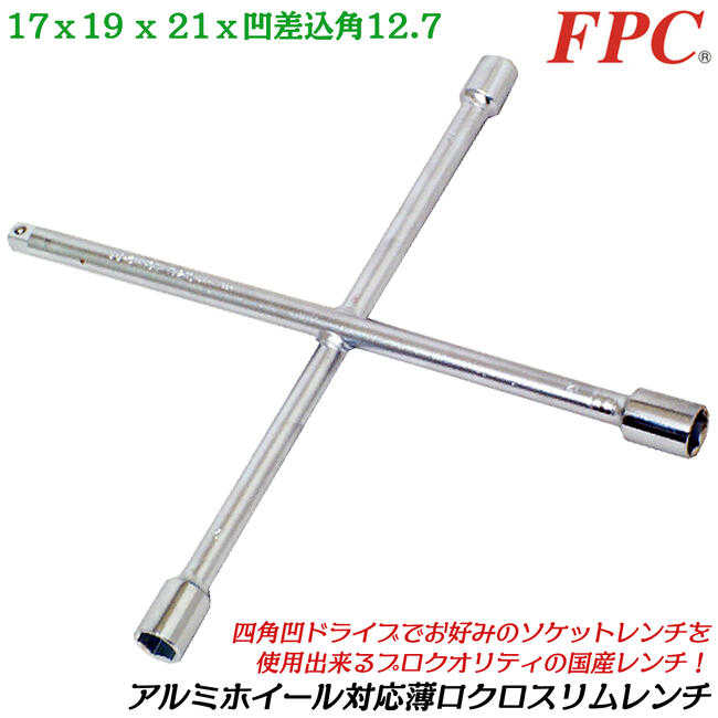 FPC アルミホイール用薄口クロスリムレンチ 17x19x21x凹12.7mm 薄肉ソケット タイヤ交換 自動車 バイク 整備 アルミホイール対応 HCW-1721S フラッシュツール