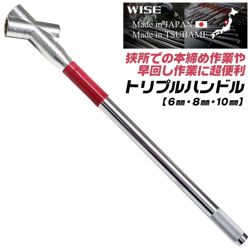 WISE トリプルハンドル 6mm 8mm 10mm対応 継ぎ足しハンドル 狭所 早回し 本締め可能 延長パイプ 六角レンチ ボールポイントレンチ 機械 修理 #2030 ワイズ